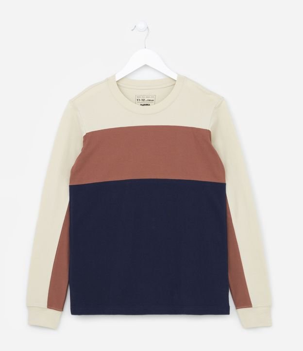 Camiseta Manga Longa Infantil com Recortes - Tam 5 a 14 anos