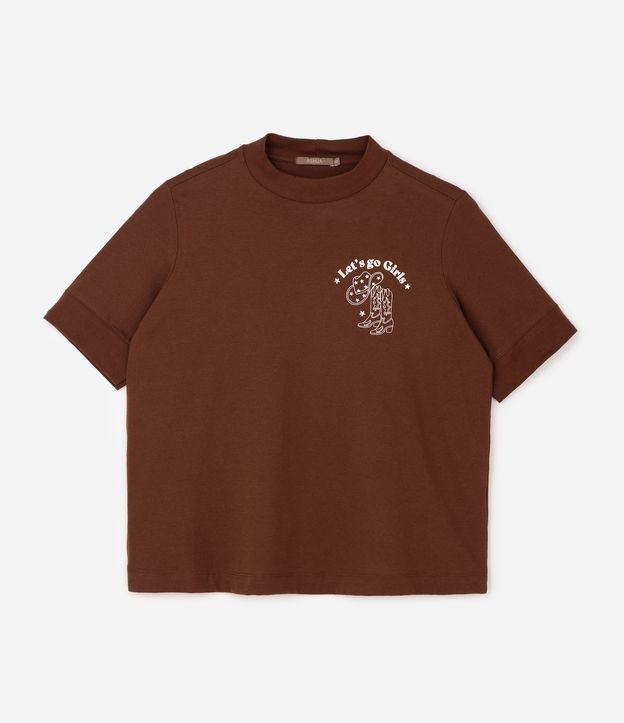 Camiseta Meia Malha com Estampa Let’s Go Girls Curve & Plus Size Marrom