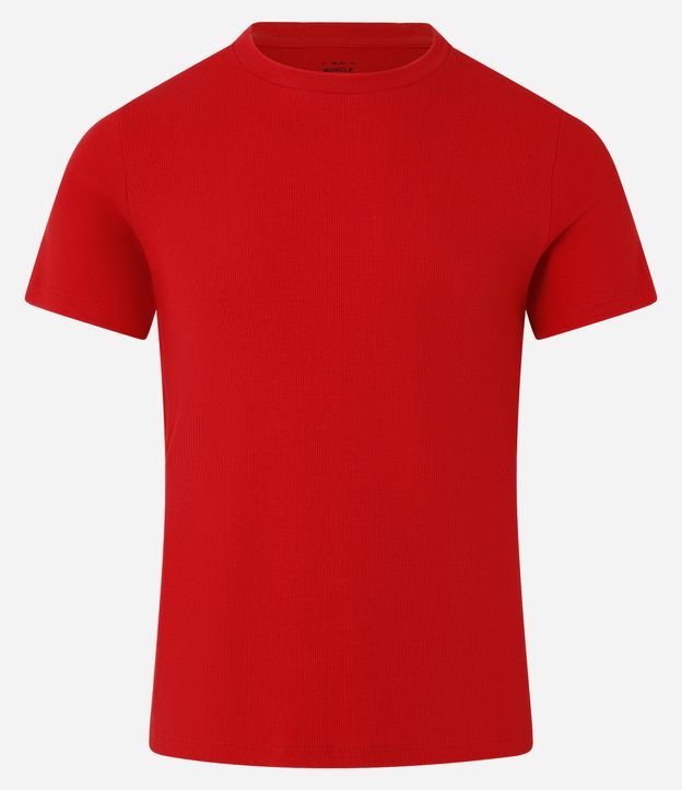 Camiseta masculina de modelo muscle, com gola redonda, mangas curtas e confeccionada em malha ribana de algodão.