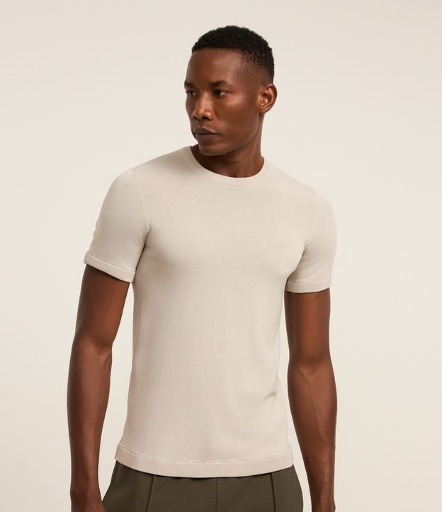 Camiseta masculina de modelo muscle, confeccionada em tricô, com gola redonda e mangas curtas. Não possui estampa e conta com acabamento texturizado.
