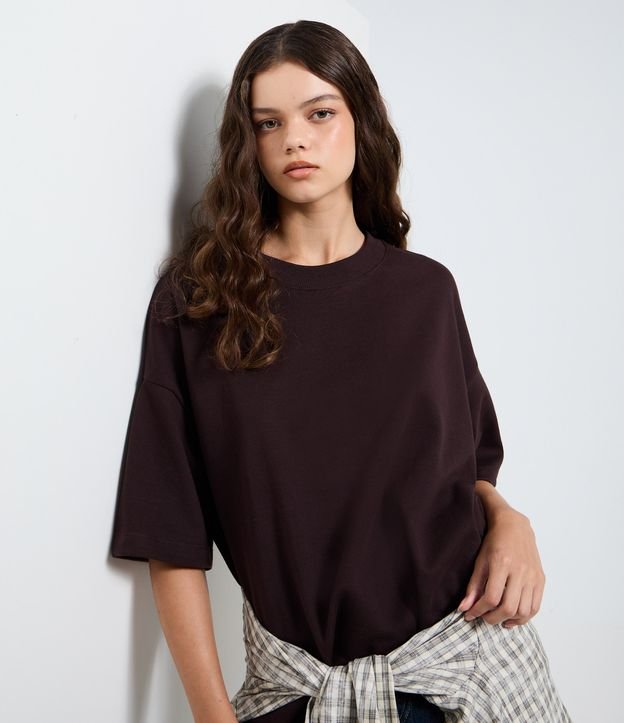 Camiseta over, confeccionada em algodão bci mais sustentável com manga curta e sem estampa.