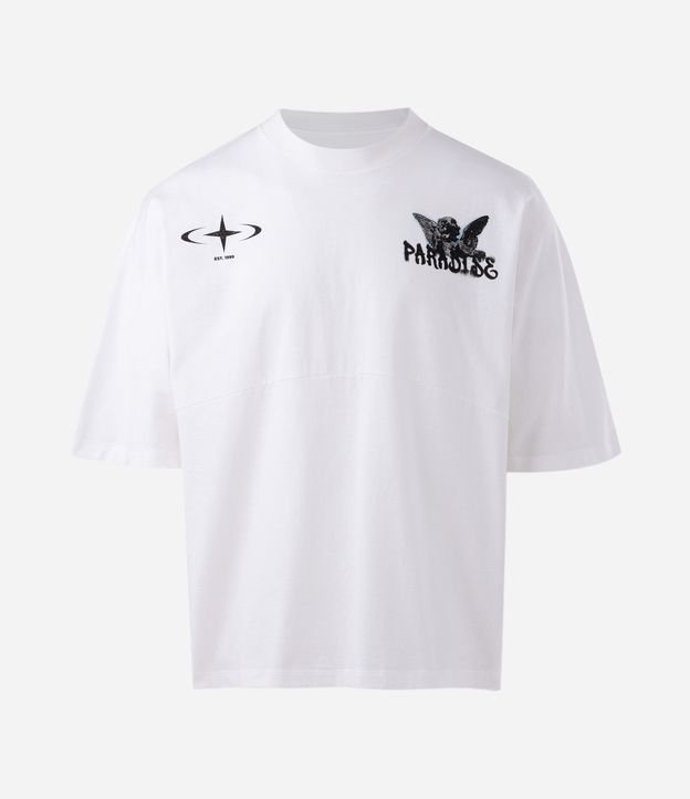 Camiseta Oversized em Algodão com Estampa Anjo Paradise Off White