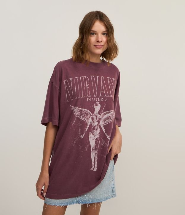 Camiseta Oversized em Algodão Lavada com Estampa Nirvana