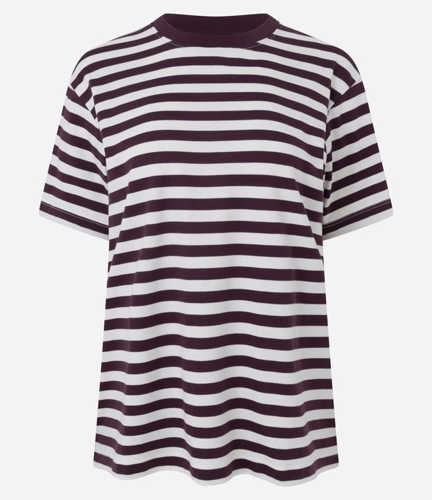 Camiseta Oversized em Algodão Peruano com Listras Horizontais Bordô