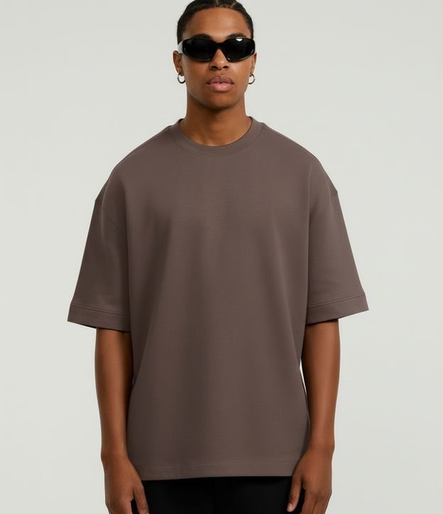 Camiseta Oversized em Moletinho com Cava Deslocada Marrom