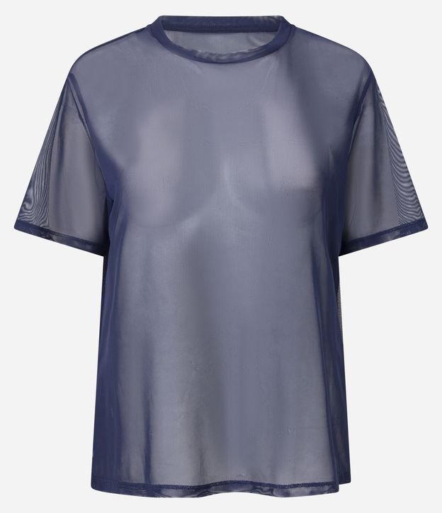 Camiseta Oversized Esportiva de Tule Azul Marinho