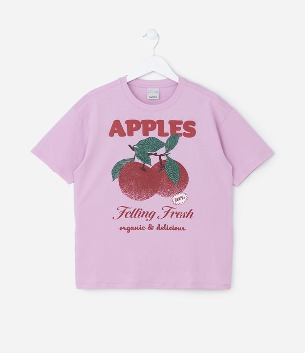 Camiseta Oversized Infantil com Estampa Maçãs - Tam 7 a 14 Anos Rosa