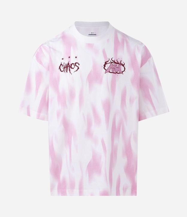 Camiseta Oversized Sportcore em Algodão com Estampa Chaos Branco / Rosa