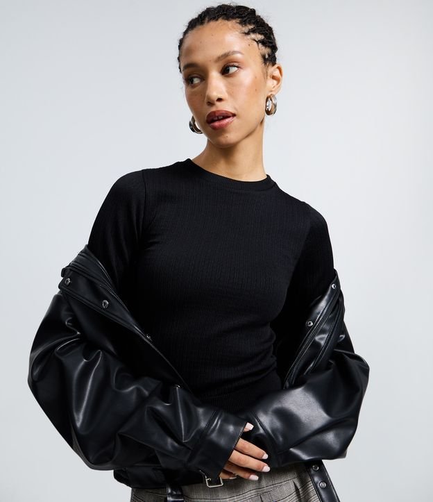 Camiseta sem costura em microfibra com toque peluciado e acabamento canelado que garante conforto térmico. O modelo possui gola careca, manga longa e caimento ajustado ao corpo, ideal para compor looks casuais ou usados como segunda pele em dias mais frios.