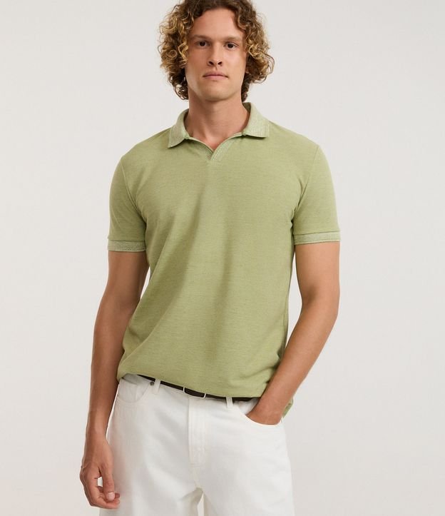 Camiseta Polo Comfort em Algodao Texturizado com Manga Curta Verde