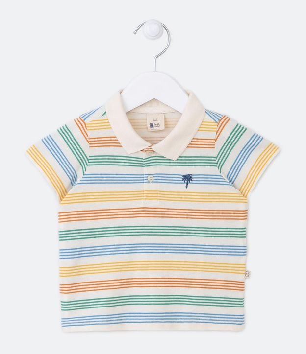 Camiseta Polo Infantil com Bordado Listradinho - Tam 0 a 18 meses