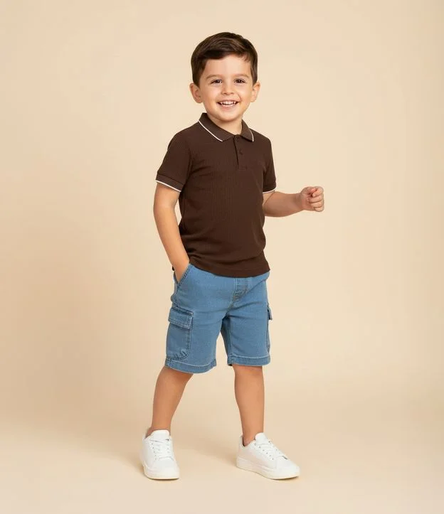 Camiseta Polo Infantil Texturizada - Tam 1 a 6 Anos Marrom