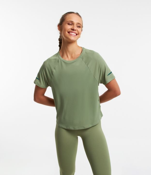 Camiseta Raglan Esportiva em Poliamida com Estampa na Manga