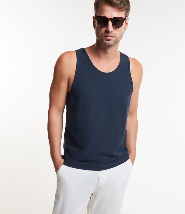 Regata regular masculina confeccionada em algodão e sem estampa. Possui gola redonda e alças médias.