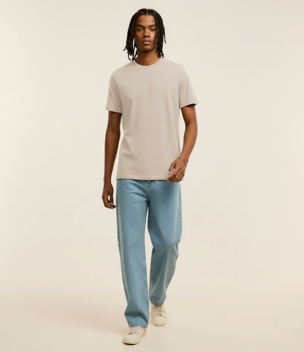 Camiseta Regular Básica em Algodão Bege Claro