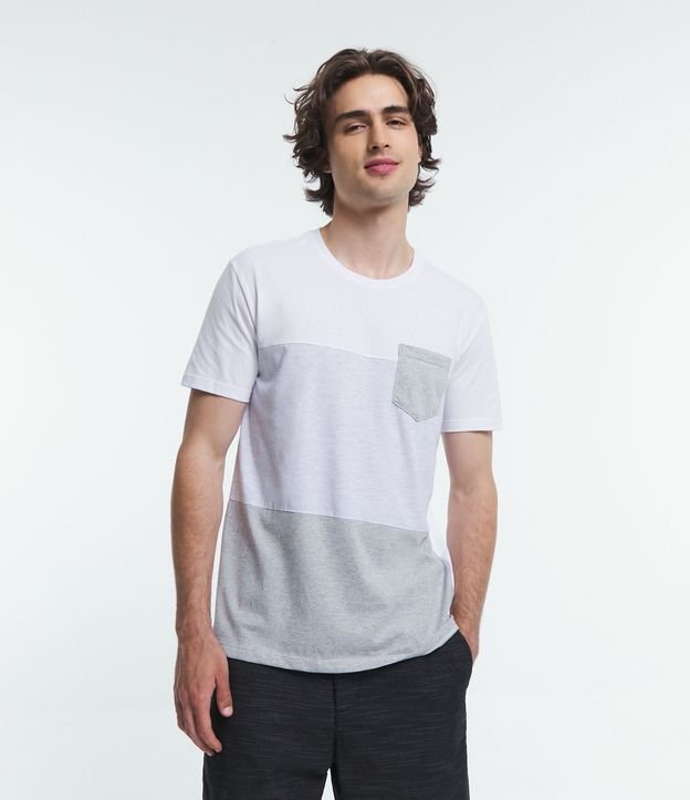 Camiseta Regular em Algodão com Blocos de Cor e Bolso Frontal
