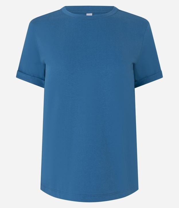 Camiseta Regular em Algodão com Manga Dobrada Azul