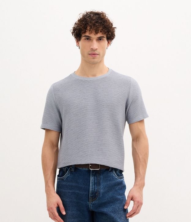 Camiseta Regular em Algodão com Textura Horizontal