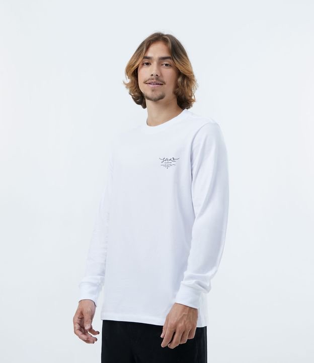 Camiseta Regular em Algodão Manga Longa com Fotoprint Coqueiro e Lettering Caligráfico
