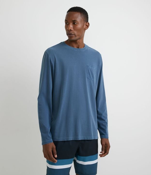 Camiseta Regular em Algodão Manga Longa Estonada