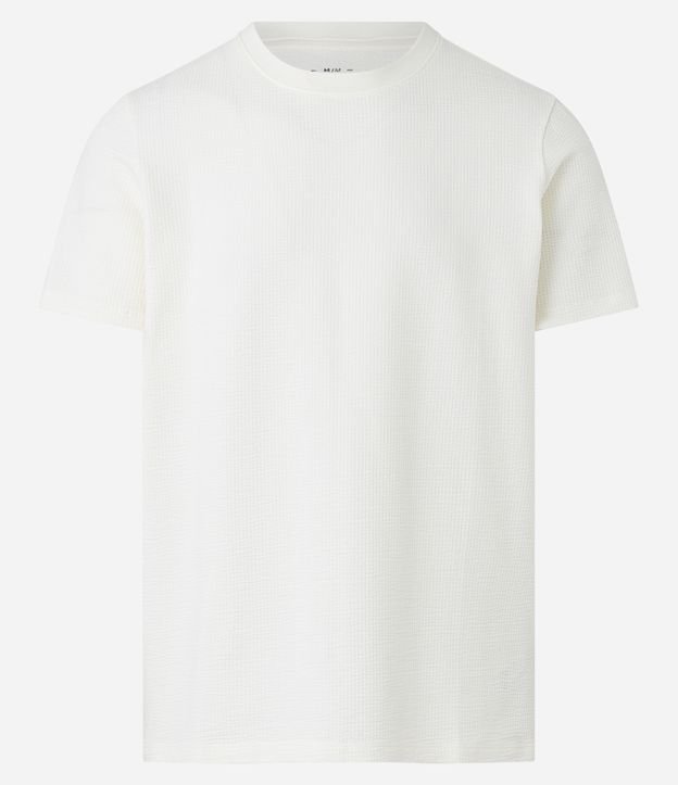 Camiseta Regular em Ana Ruga com Textura e Manga Curta