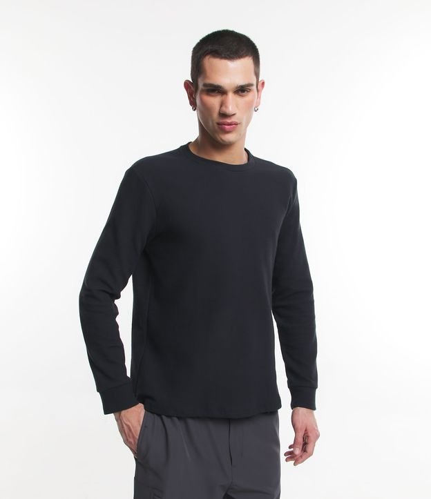 Camiseta Regular em Malha Texturizada com Manga Longa