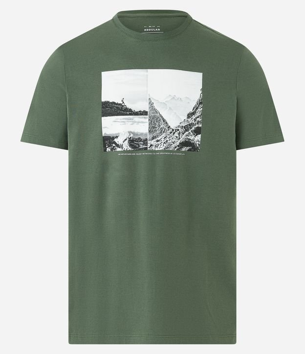 Camiseta Regular em Meia Malha com Estampa de Montanhas
