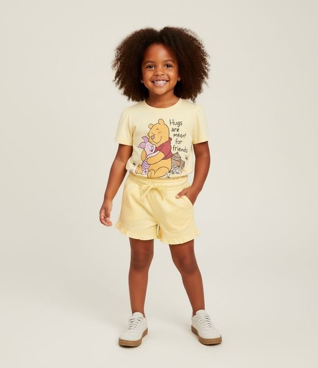 Camiseta Regular Infantil com Estampa Ursinho Pooh - Tam 1 a 6 Anos Amarelo