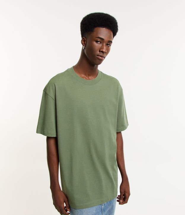 Camiseta Relaxed em Algodão com Efeito Pesado Verde