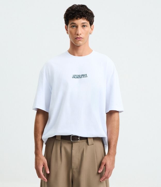 Camiseta Relaxed em Algodão com Estampa Divertida de Sardinha Branco