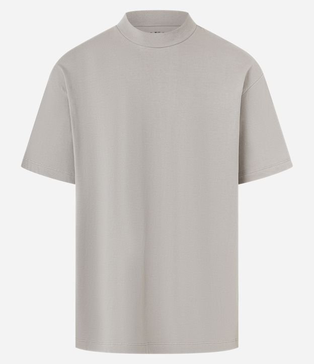 Camiseta Relaxed em Algodão com Gola Canelada Cinza