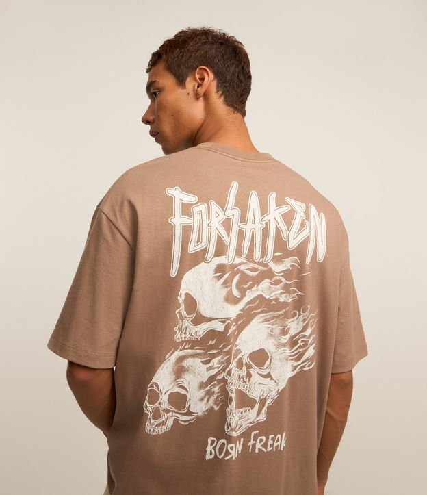 Camiseta Relaxed em Malhão Estonado com Estampa Forsaken Born Freak Marrom
