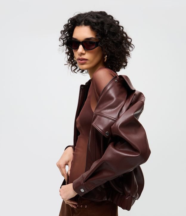 Camiseta Segunda Pele em Tule Manga Longa Marrom