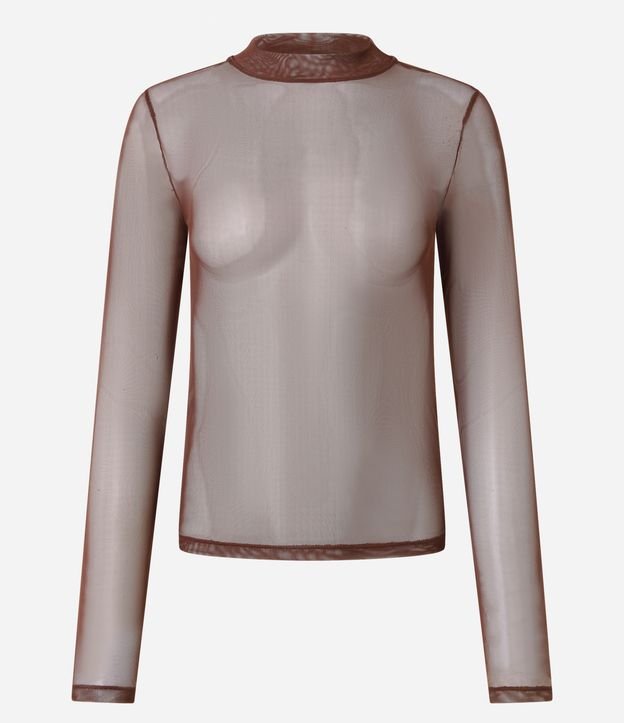 Camiseta Segunda Pele em Tule Manga Longa Marrom