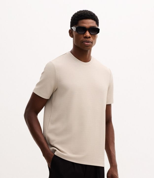 Camiseta masculina no modelo slim em poliéster. Possui gola redonda, manga curta, sem estampa e texturizada. Em seu diferencial o tecido não amassa