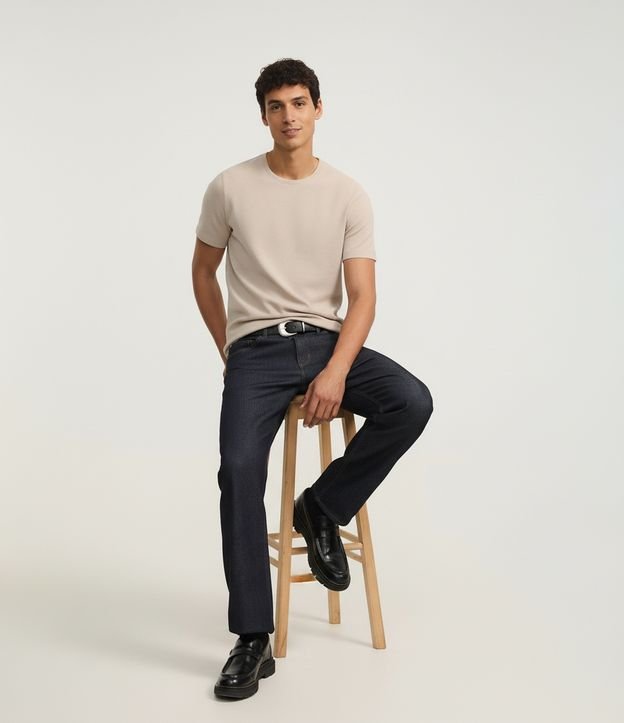 Camiseta masculina confeccionada em algodão mais sustentável, no modelo slim. Possui gola redonda, manga curta e canelada.