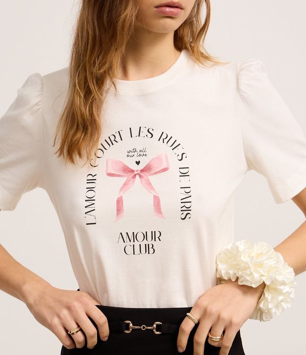 Camiseta Slim em Algodão com Manga Bufante e Estampa Laço L'Amour
