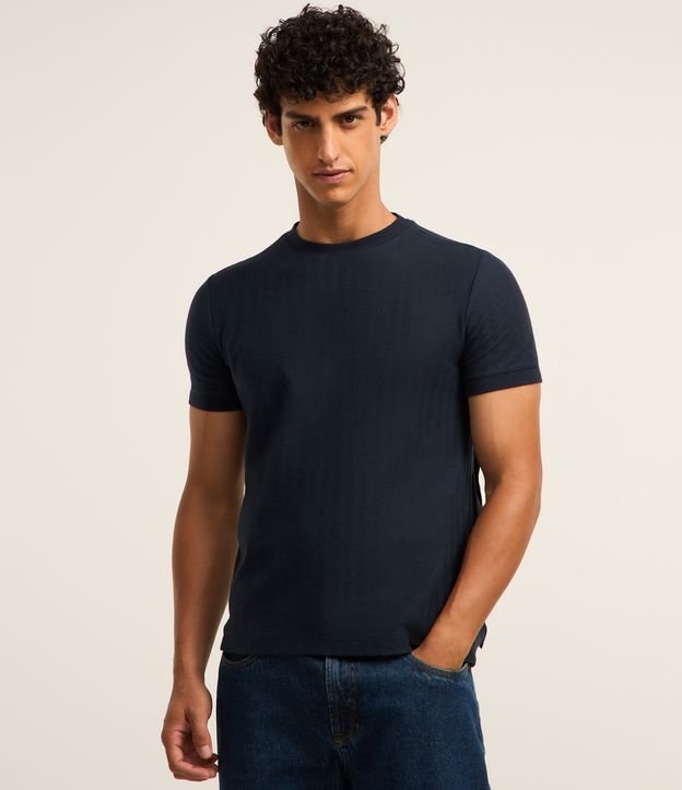 Camiseta Slim em Algodão com Textura Espinha de Peixe Azul