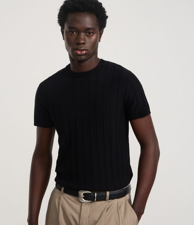 Camiseta Slim em Tricô com Relevos Verticais Preto
