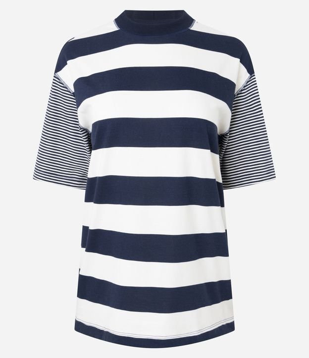 Camiseta T-Shirt Listrada em Algodão com Costura Aparente