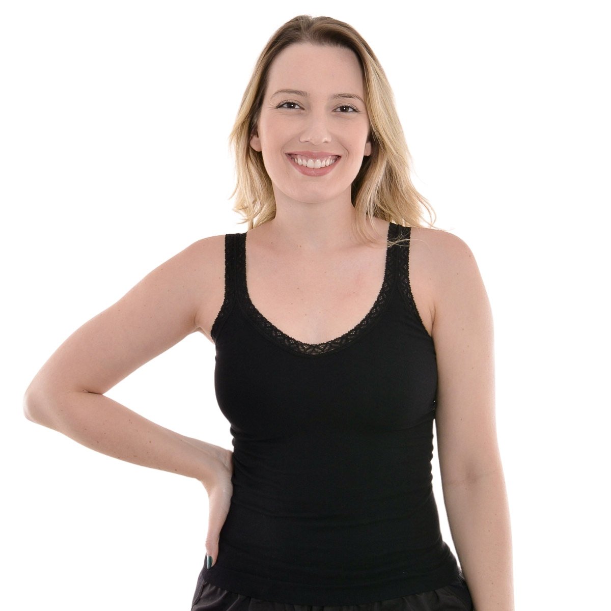 Camisete Canelada com renda sem costura Selene