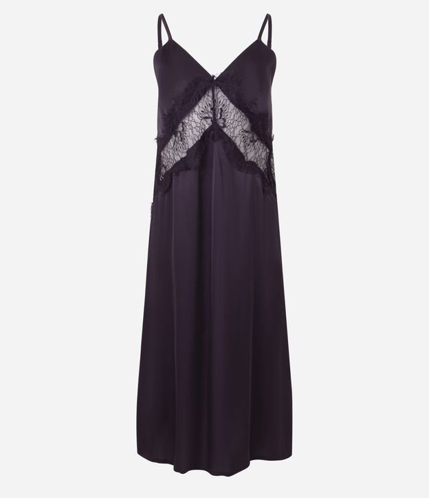 Camisola Acetinada com Renda Vazada Roxo