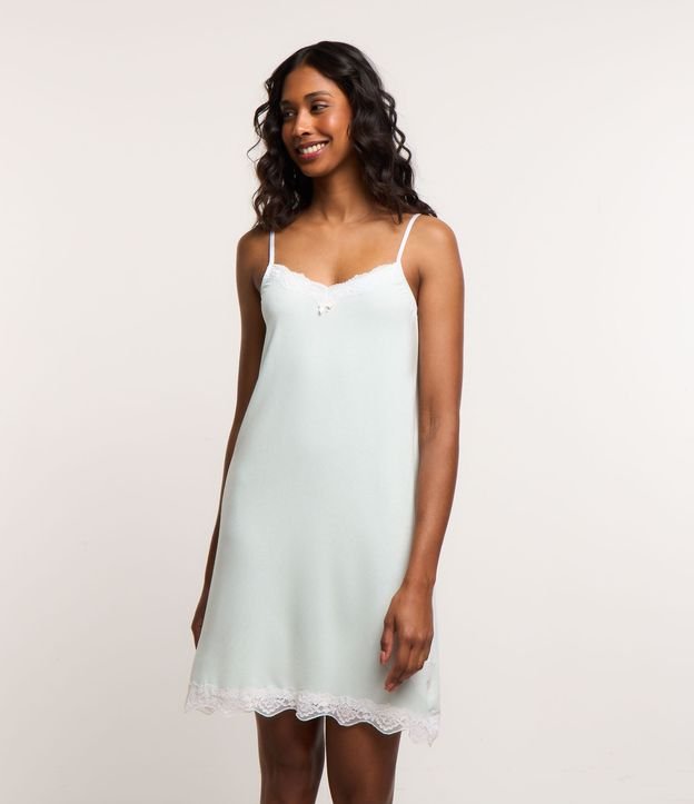 Camisola Alcinha e Renda com Lacinho no centro Azul Claro