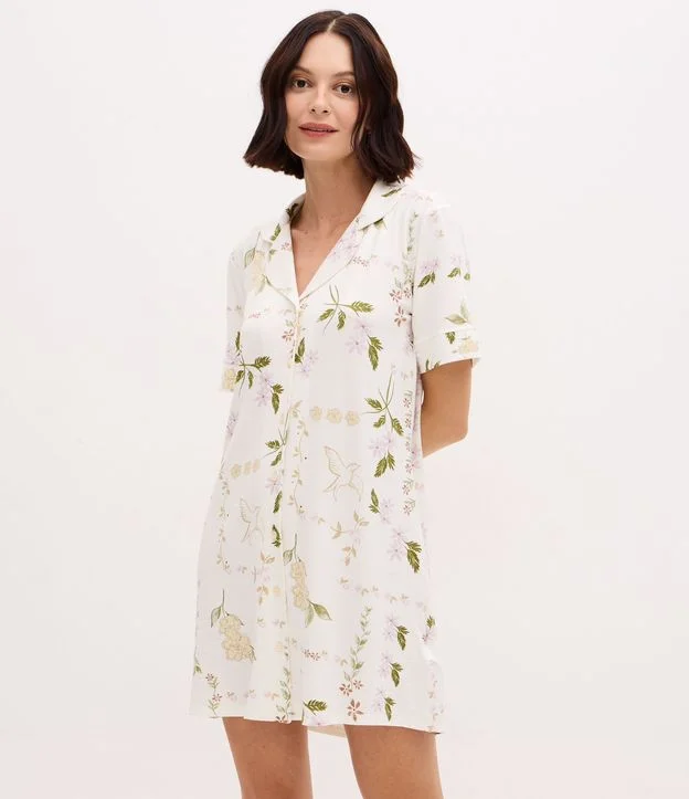 Camisola Americana em Viscolycra com Estampa Floral Branco