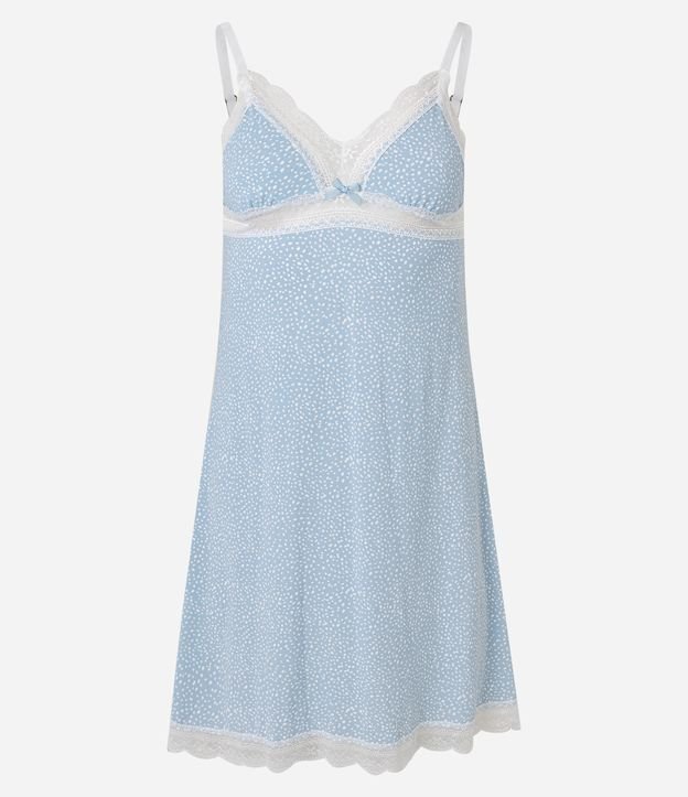 Camisola em Microfibra Poá com Alcinha e Renda Azul