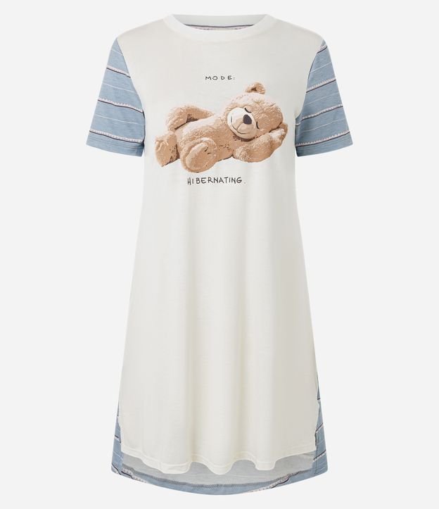 Camisola feminina confeccionada em viscose certificada. Possui manga curta, estampa frontal de urso dormindo, painel listrado em tom contrastante na parte de trás, modelagem reta, decote redondo e tecido leve, proporcionando conforto e mobilidade para o uso diário e noites de descanso.