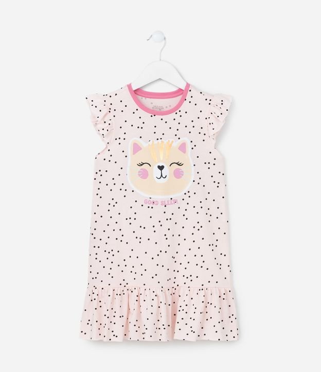 Camisola Infantil com Babados e Estampa Gatinha - Tam 4 a 12 Anos