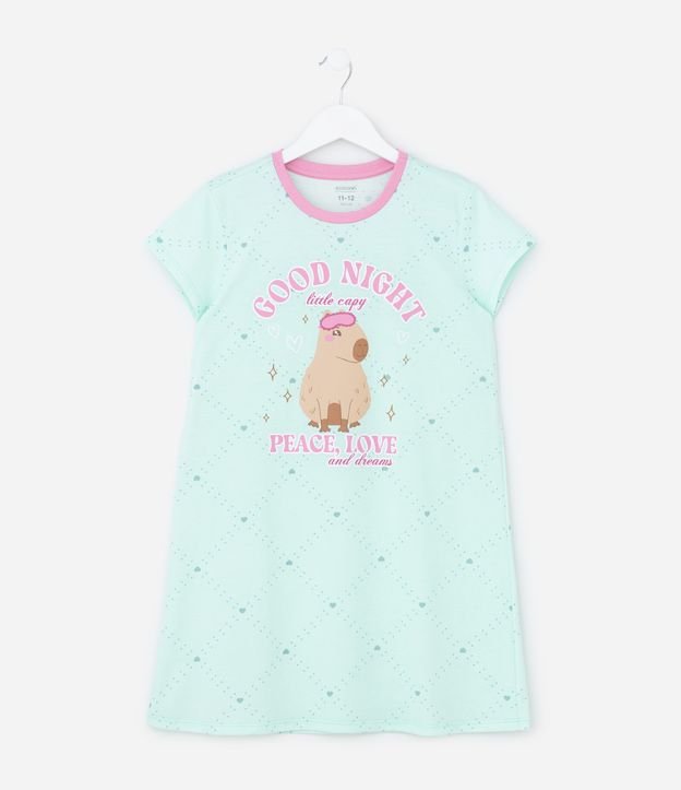 Camisola Infantil com Estampa Capivara – Tam 5 A 14 Anos Verde Menta