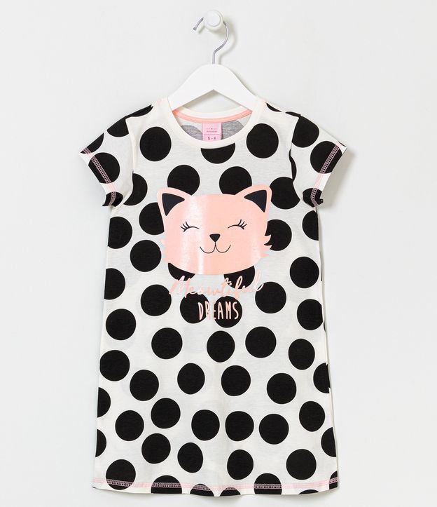 Camisola Infantil Estampa Poá com Gatinho - Tam 5 a 14 anos
