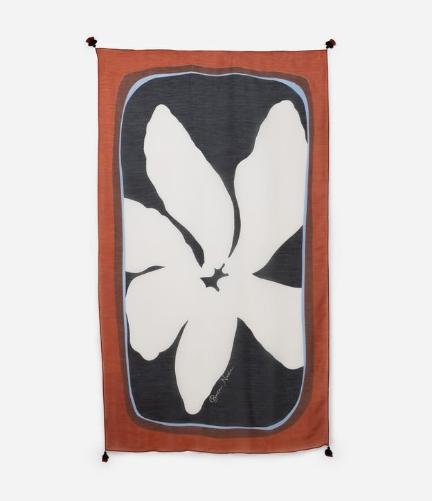 Canga Retangular em Chiffon com Estampa Floral e Tassel
